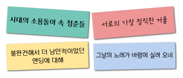 ํ์ฑ๋ถ๊ฐ ์์ด์ง ์๊ธฐ์ ์ฒํ โํฌ๋โ, ์์ ์ ๊ฟ์ ์งํค๊ธฐ ์ํด ์กด๊ฒฝํ๋ โ์ ๋ฆผโ์ด ์๋ ๊ณณ์ผ๋ก ์ ํ ๊ฐ๊ธฐ๋ก ๊ฒฐ์ฌํ๋ค. ๊ทธ ๊ณผ์ ์์ โ์ด์งโ๊ณผ ๋ง๋๊ฒ ๋๊ณ ๋์ ์๋ก์ ๊ฟ์ ์์ํ๋ฉฐ ๊ฐ๊น์์ง๋ค. ๊ทธ๋ฌ๋ ํฐ ๊ธฐ๋๋ฅผ ํ๊ณ ์ ํ์ ์จ ๊ฒ๊ณผ ๋ฌ๋ฆฌ โ์ ๋ฆผโ๊ณผ์ ๊ด๊ณ๋ ์ํํ์ง๊ฐ ์์๋ฐ... |
